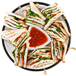 Includes a mix of Chicken, Veggie, Beef, or Pork, served with Salad or Ham and Cheese.